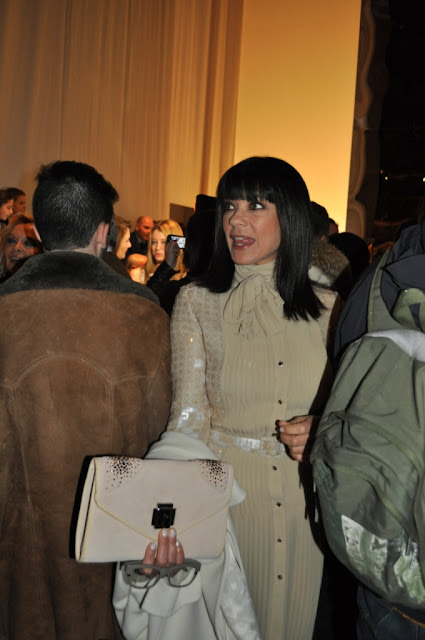 Last Sunday we had the pleasure to participate at the beautiful Laura Biagiotti's fashion show. The fall winter collection celebrates Rome, the eternal city. On the catwalk have paraded extremely light knitted garments and other voluminous with ribs that remembered the grooves of ancient columns. The lace of leather was applied on typically male patterns as the Prince of Wales and the houndstooth. The evening gowns, in fluttering and seductive chiffon, are stunning. The winter palette stretches on a ground white/ black / gray with a touch of burgundy, teal, orca and brushstrokes of gold and silver. The bags are made of knitted finished with chains. The dresses that have made us dream????? The lace burgundy dress, white chiffon dress embroidered with sequins and wool corset style dress with braids! Here the fashion show video. Lisina & Betty